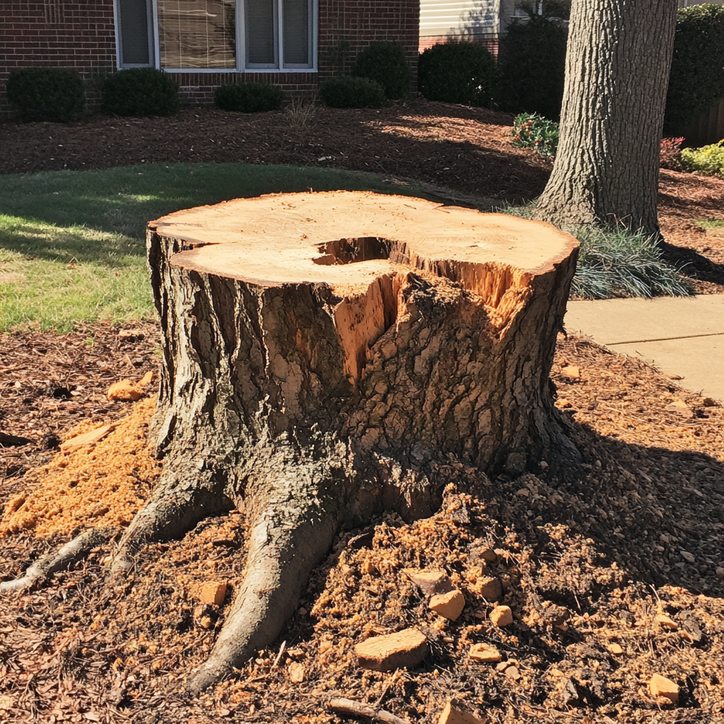 Stump grinding produces wood chips and sawdust that must be managed. In professional services, debris is either collected for reuse as mulch, removed from the property, or spread evenly to prevent uneven terrain. Proper debris management ensures your yard is left clean, safe, and aesthetically pleasing.